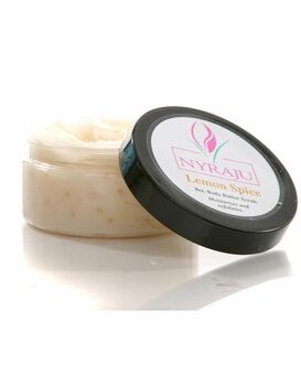 A body butter scrub with slightly coarser exfoliants (like sea salt or crushed walnut) sloughs off dead skin, while the butters deeply hydrate to prevent cracking. Regular use keeps feet sandal-ready year-round.