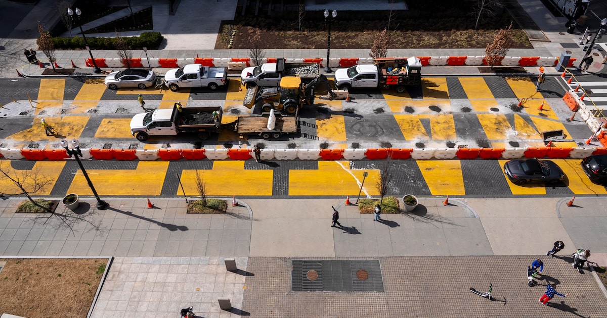 “I needed to be here today. I can’t just let this go away,” Thomas said, as jackhammers began tearing into the giant yellow letters in the street. Thomas discretely secured a chunk of pavement and said holding it made her feel conflicted.