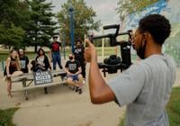 Eyaan Mahone, a Carbondale-based cinematographer, films members of the So. Ill Unity Coalition for a promotional video on Sunday in Attucks Park in Carbondale. The group made the video to promote an upcoming demonstration in Vienna.