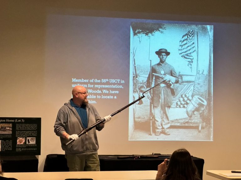In 2019, archaeological mitigation efforts for the Springfield Rail Improvements Project found that some of those homes in the neighborhood that burned down during the riots, then known as the Badlands, belonged to some of the Black military men who excelled and were celebrated during this month’s exhibit at the Illinois State Museum.