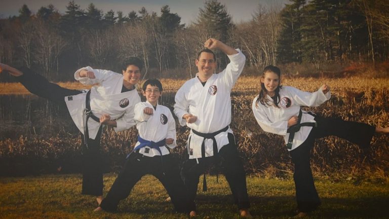 Lisa, her husband Eric, and their two children, Jordan and Nick, spend nearly every day at the dojo. Lisa has decades of experience under her belt and has even written a book about it. Nick joked about how he was in his mother’s belly during her black belt certification.