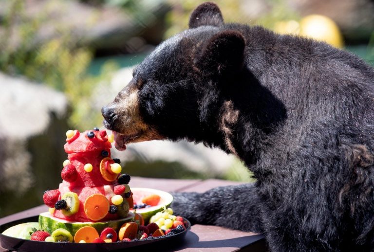Suzie the black bear celebrated her 30th year over the weekend with presents, cake and plenty of snacks. The “Bear Birthday Bash” brought hundreds of visitors to the park, all hoping to get a glimpse of Suzie and her enclosure-mate, 7-year-old Luvey.