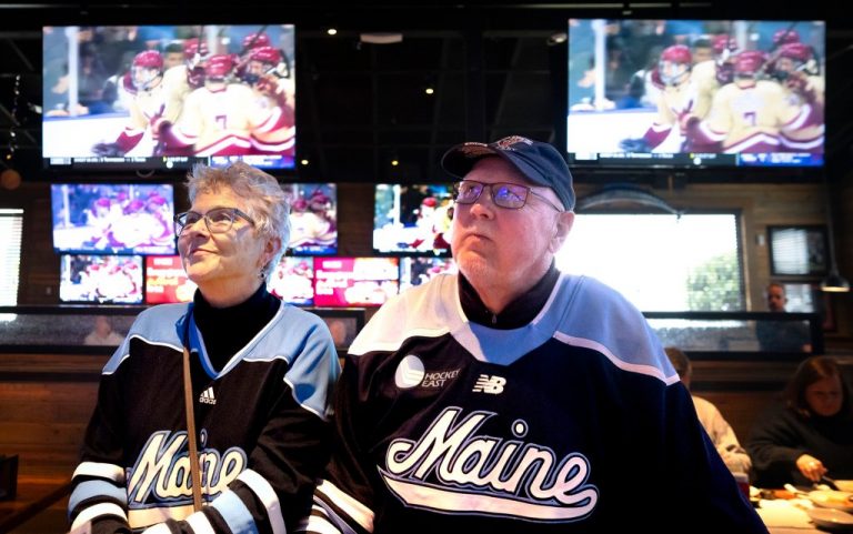 ALLENTOWN, Pa. — Kristi Hall sat in the lobby of her hotel, talking all things University of Maine hockey, when a stranger noticed her sweatshirt, with MAINE written across the front in bold, blue letters. He approached and raised his hand.