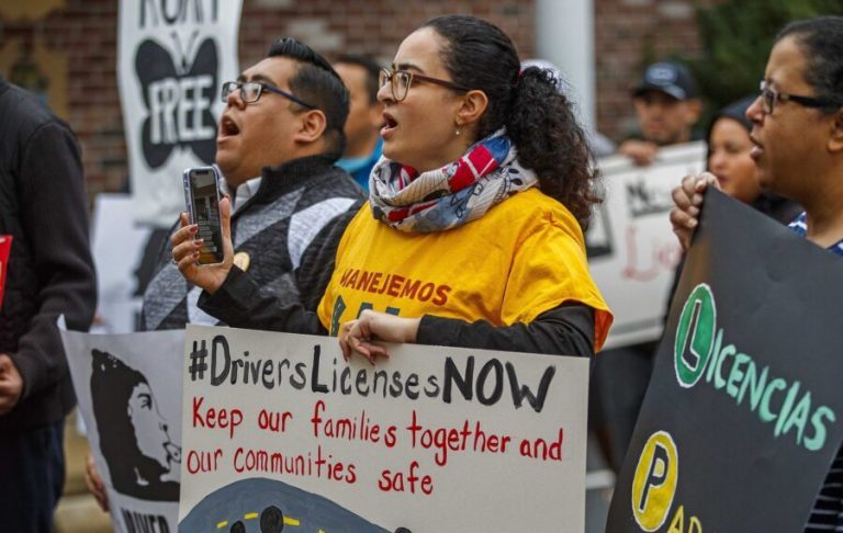Immigrant activists were rallying Tuesday, Dec. 10, 2019, in Northfield, N.J., in front of the offices of Assemblyman Vince Mazzeo and Assemblyman John Armato about Drivers Licenses For Immigrants. Radio Consecha NJ, a recipient of New Jersey’s Civic Information Fund, has covered issues like drivers licenses for Spanish-speaking audiences Craig Matthews/The Press of Atlantic City via AP