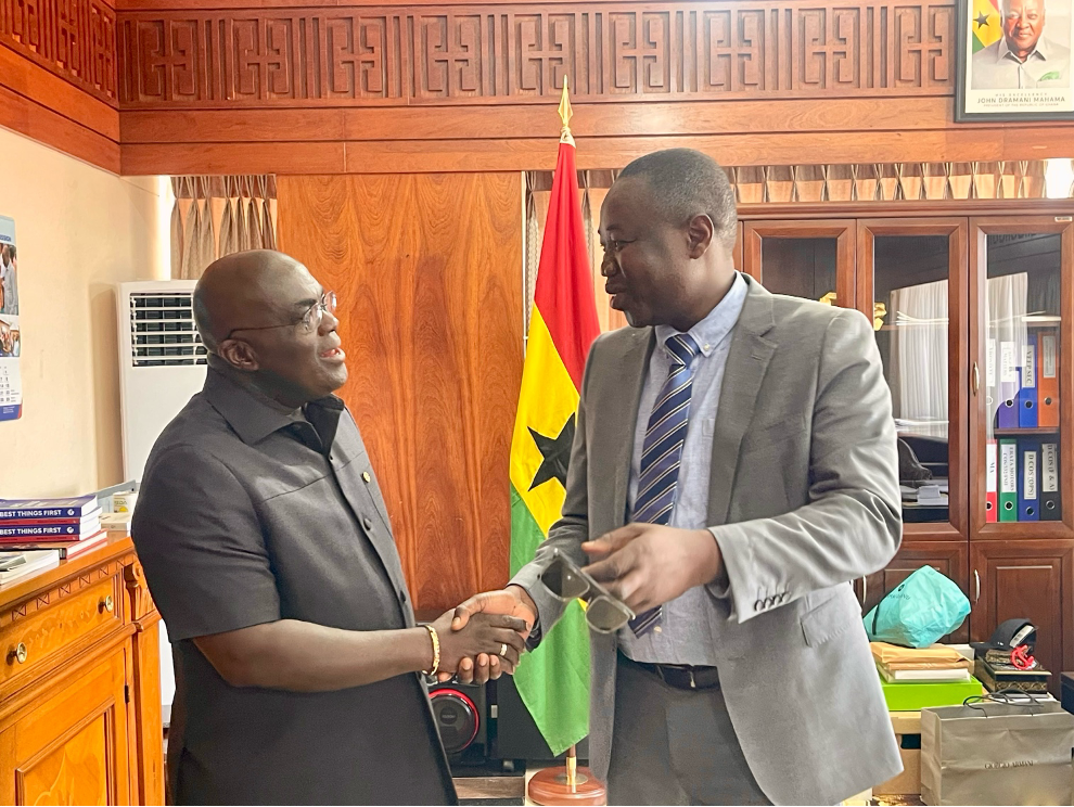 Managing Director of National Investment Bank PLC (NIB), Dr Doliwura Zakaria, paid a courtesy visit to the Chief of Staff at the Presidency, Julius Debrah.