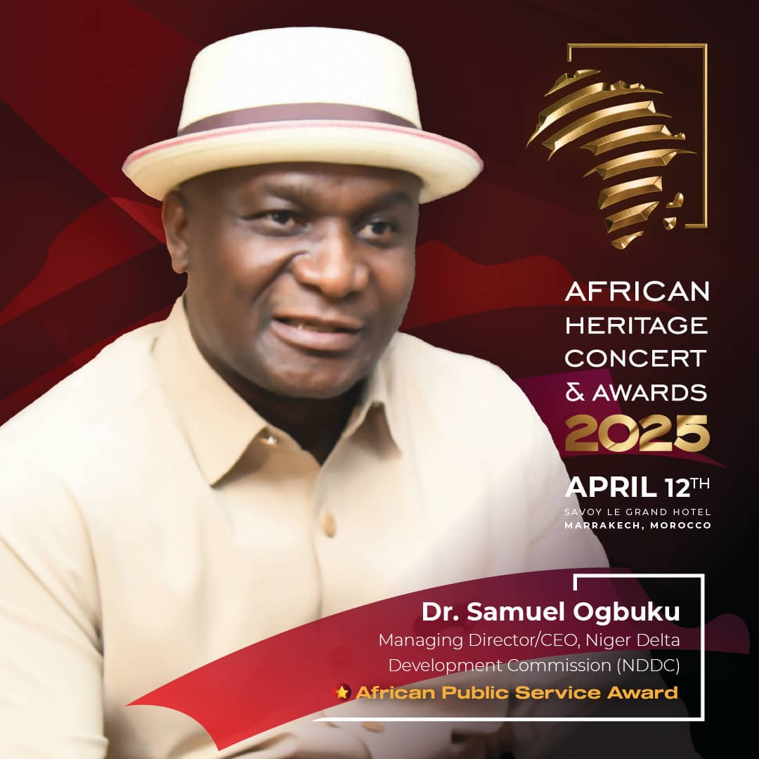 The Managing Director/Chief Executive Officer of the Niger Delta Development Commission (NDDC), Nigeria, Dr. Samuel Ogbuku, is set to receive the esteemed ‘African Public Service Award’ at the prestigious African Heritage Concert and Awards (AFRIHeritage), which will take place in Marrakesh, Morocco.