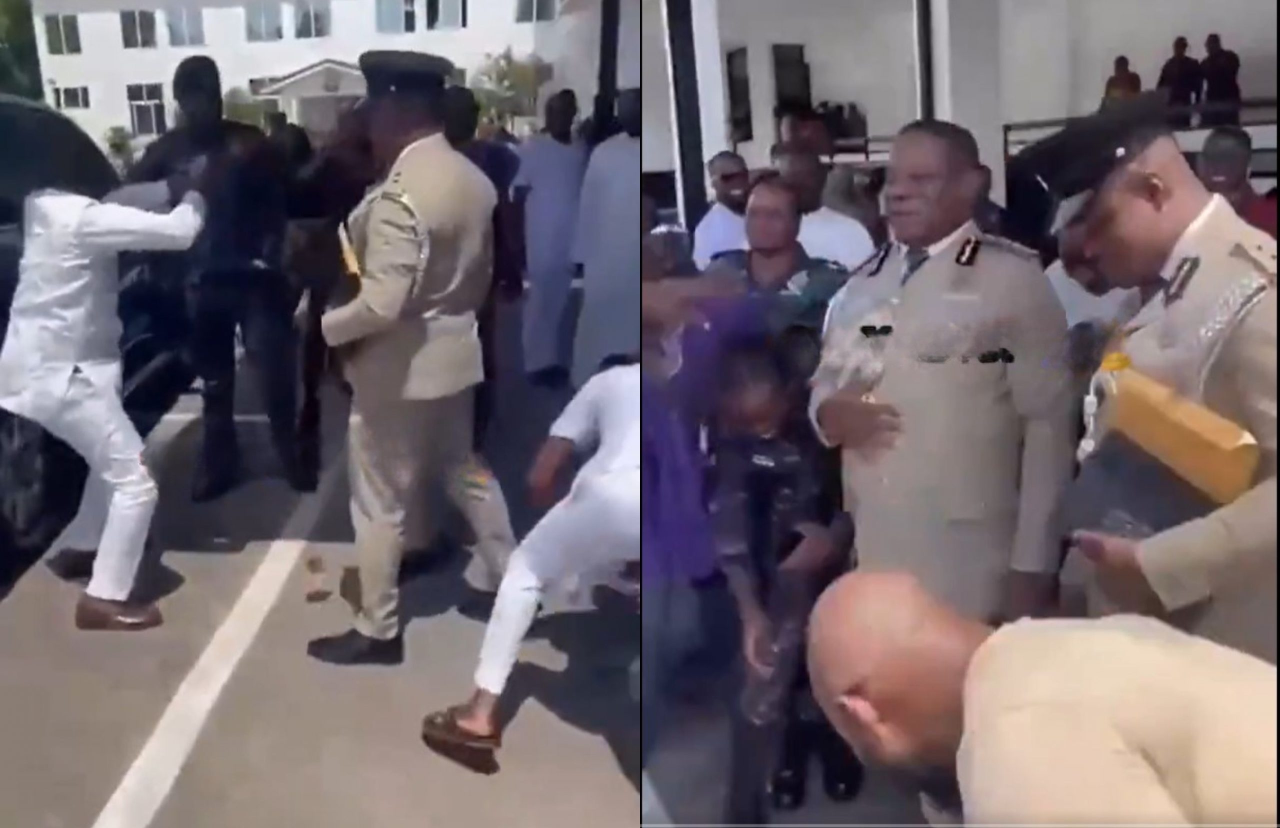 The footage, taken at the police headquarters in Accra ahead of his official swearing-in, shows an unidentified officer dressed in white showering cash on COP Yohuno while other officers in uniform jubilantly celebrate.